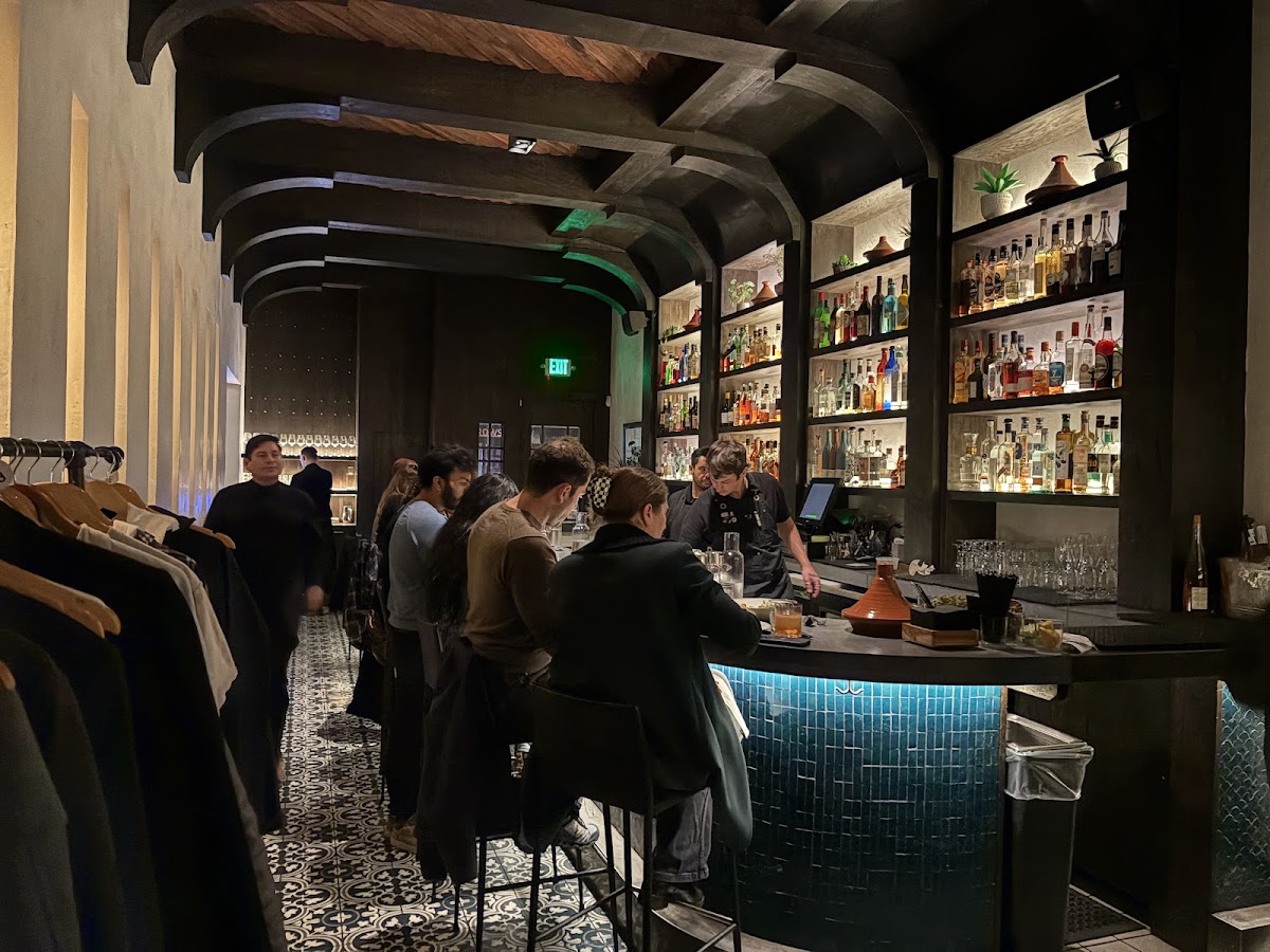 After our dinner service at Aziza, we were left with very mixed feelings about the place. Our seating was the high top communal table, which on its own is fine. What is not fine, however, is barely leaving any space between parties and forcing people to sit very closely together. We thankfully had some space between us and the other parties at the table, but that was only because a couple that was supposed to be next to us was upset and got relocated somewhere else. Otherwise our waiter was splendid, and the service was decent overall. Moving onto the food, we ordered sumac flatbread, trio of spreads, charred prawns, basteeya, shakshuka, and couscous -- served in that order.. Aziza started off incredibly strong with the flatbread and spreads; the flavors were bold and vibrant, and the bread tasted freshly baked. The prawns were solid as well, with the green apples adding a nice touch. But after such an impressive start, the basteeya didn’t quite keep the pace. We were told that it's the restaurant’s signature dish, but it felt a bit more familiar than expected rather than something particularly standout. It was still a solid dish, just not as special as we had hoped. Around the time we finished the basteeya, the restaurant became noticeably busier, and we ended up waiting quite a while for the shakshuka and couscous. Maybe it was coincidence, but it definitely felt like the kitchen slowed down once the influx of guests arrived. When they did come out, both dishes were enjoyable, though once again they leaned more toward straightforward and familiar than anything especially distinctive. If the restaurant can sort out the communal table spacing and smooth out the pacing of the meal, I’d be more than happy to return. With service as warm and attentive as we experienced, I’d certainly look forward to coming back.